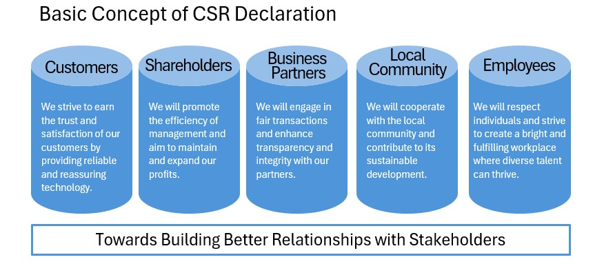 We will fulfill our corporate social responsibility by conducting social activities in accordance with the "Code of Conduct" and by setting the following as our corporate ethics.[Corporate Ethics]