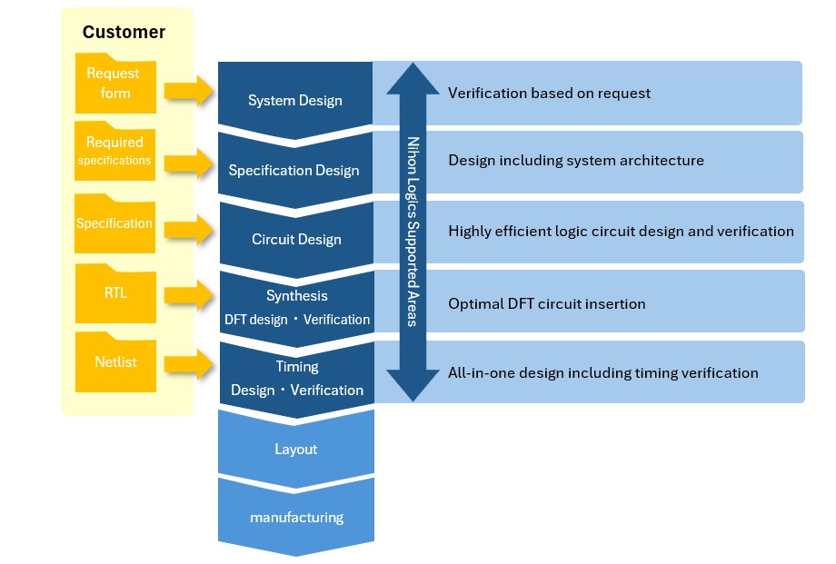 We provide comprehensive support from system analysis to timing design and verification. Additionally, we can also handle individual development processes according to our customers' specific requirements.